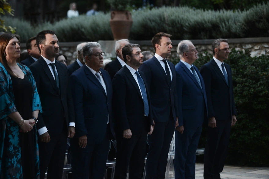 Το παρών έδωσαν ο πρωθυπουργός Κυριάκος Μητσοτάκης, ο πρόεδρος της Βουλής Κωνσταντίνος Τασούλας, ο αρχηγός της αξιωματικής αντιπολίτευσης Στέφανος Κασσελάκης, ο πρόεδρος του ΠΑΣΟΚ-Κίνημα Αλλαγής Νίκος Ανδρουλάκης, ο γενικός γραμματέας του ΚΚΕ Δημήτρης Κουτσούμπας, ο πρόεδρος της κοινοβουλευτικής ομάδας της Νέας Αριστεράς Αλέξης Χαρίτσης, η πρόεδρος της Πλεύσης Ελευθερίας Ζωή Κωνσταντοπούλου, ο αρχηγός ΓΕΕΘΑ στρατηγός Δημήτριος Χούπης, οι αρχηγοί των τριών όπλων των Ενόπλων Δυνάμεων, υπουργοί και υφυπουργοί, βουλευτές, ο αντιπρόεδρος της Ευρωπαϊκής Επιτροπής Μαργαρίτης Σχοινάς, δικαστικοί, ο δήμαρχος Αθηναίων Χάρης Δούκας, δήμαρχοι ακριτικών περιοχών, περιφερειάρχες, γενικοί γραμματείς, τραπεζίτες και σημαντικοί εκπρόσωποι του επιχειρηματικού κόσμου. Δεν παρέστησαν ο πρόεδρος της Ελληνικής Λύσης Κυριάκος Βελόπουλος και ο πρόεδρος της Νίκης Δημήτρης Νατσιός, ενώ ο πρόεδρος των Σπαρτιατών Δημήτρης Στίγκας δεν προσκλήθηκε.