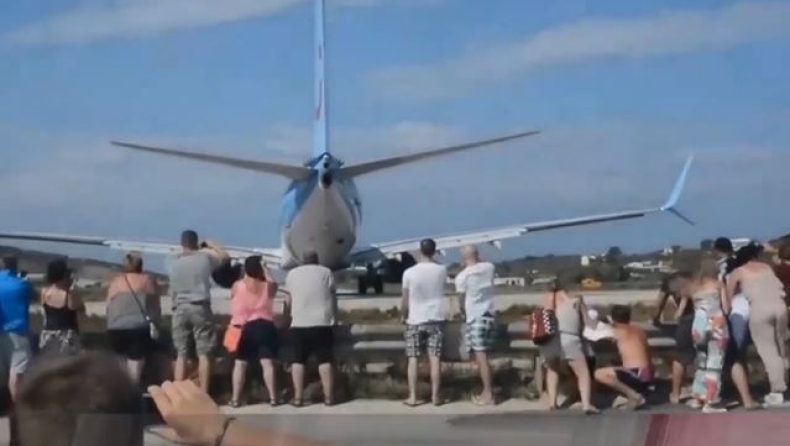 Σε νέο βίντεο που κάνει τον γύρο των μέσων κοινωνικής δικτύωσης , τουρίστες φαίνονται να στέκονται δίπλα στον διάδρομο του αεροδρομίου την ώρα της απογείωσης ενός Boeing και ακούγονται να κραυγάζουν καθώς ο αέρας που βγαίνει από τις τουρμπίνες τους «σπρώχνει» στην απέναντι πλευρά.