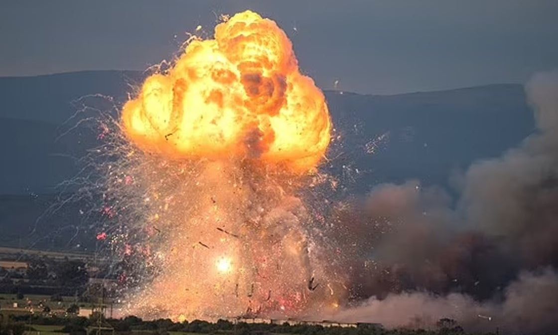 🇧🇬 ‼️ The moment of a powerful explosion of two tons of fireworks at a pyrotechnics factory in Bulgaria. Preliminary, two people were injured.