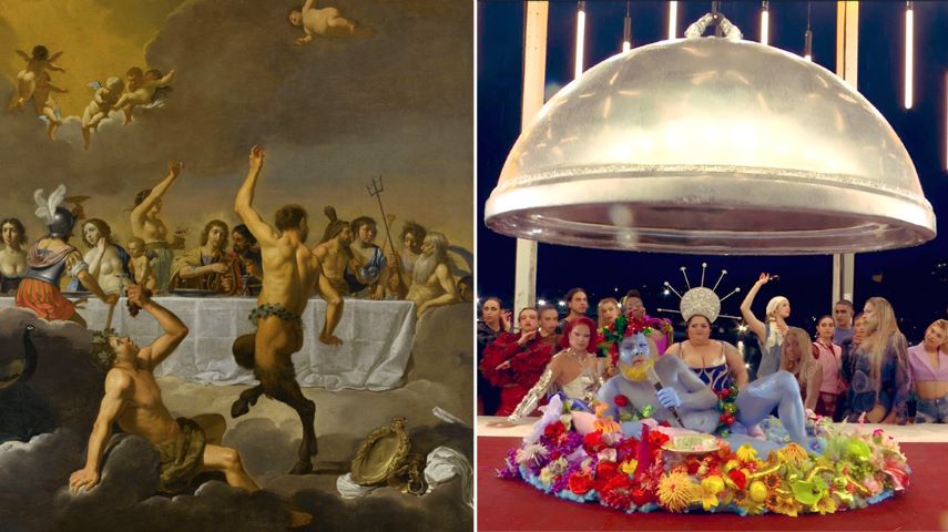 Το σκετς περιελάμβανε 18 ερμηνευτές που πόζαραν πίσω από ένα μακρύ τραπέζι με παρόμοιο τρόπο όπως απεικονίζονται ο Ιησούς και οι 12 απόστολοί του στον πίνακα του ντα Βίντσι. Ανάμεσα στους ερμηνευτές ήταν, drag queens, ένα τρανσέξουαλ μοντέλο και ένας γυμνός τραγουδιστής, που υποδυόταν τον θεό Διόνυσο, γεγονός που προκάλεσε την καταδίκη της Καθολικής Εκκλησίας.