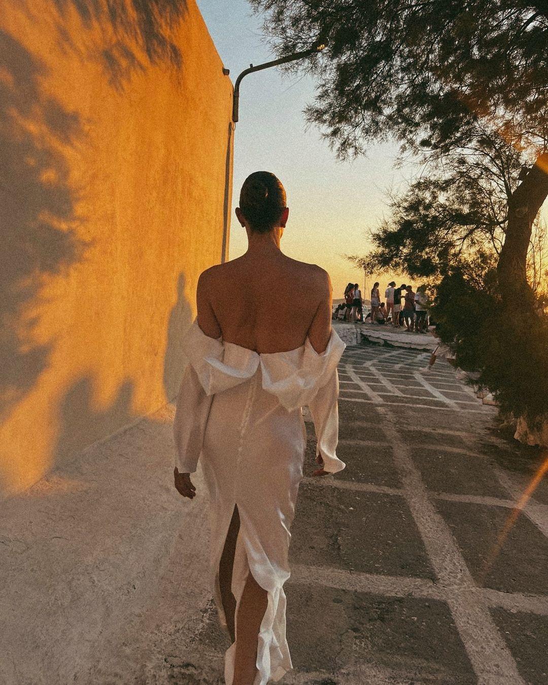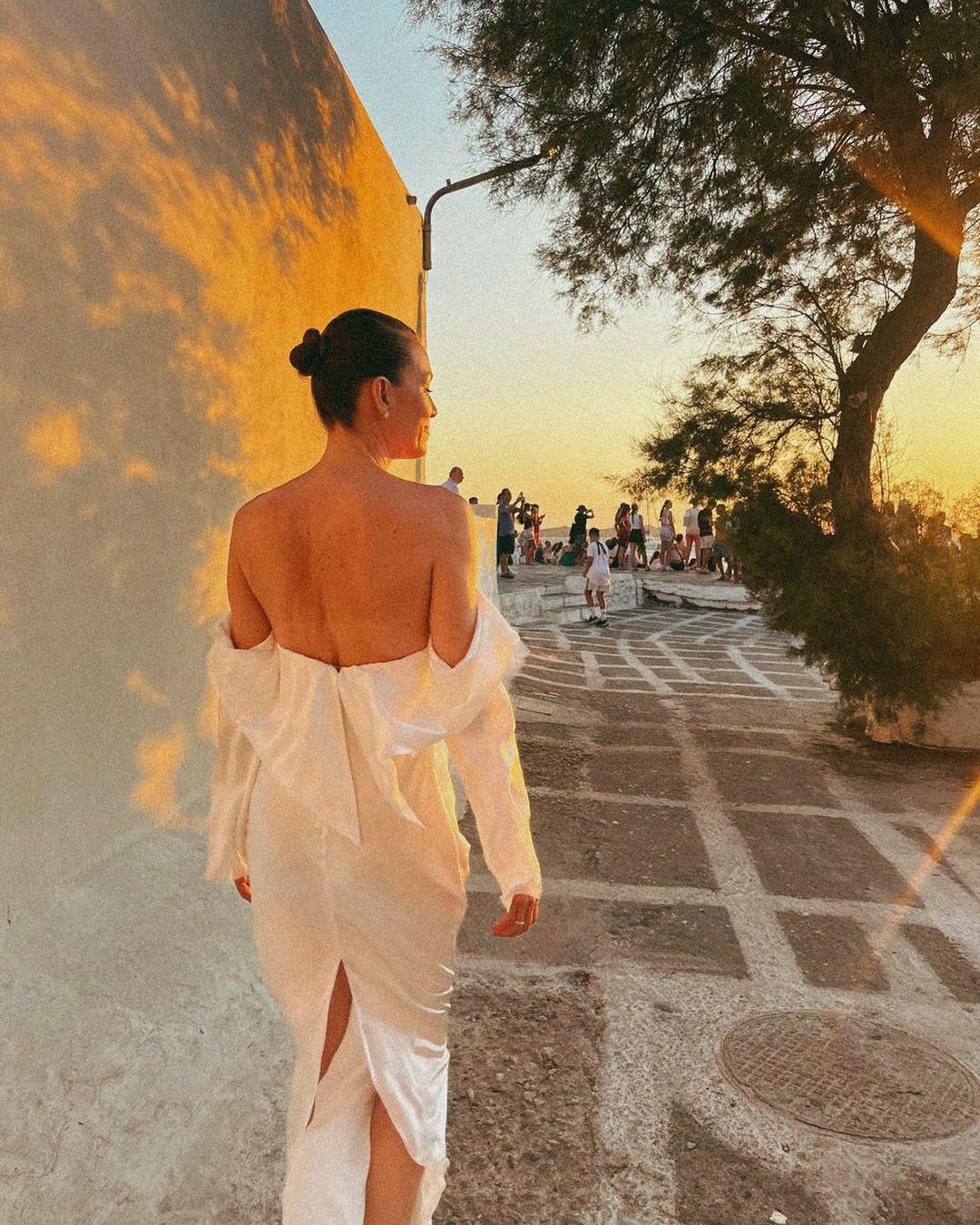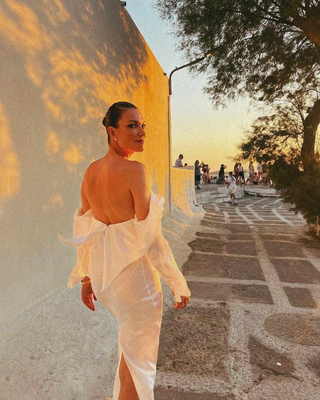 Με αφορμή τον Δεκαπενταύγουστο, η Βίκυ Καγιά έκανε μια ανάρτηση στο Instagram, όπου τη βλέπουμε να φορά ένα λευκό μεταξωτό φόρεμα του Έλληνα σχεδιαστή Άγγελου Τσακίρη. Μακρυμάνικο, με έξω τους ώμους και ιδιαίτερες λεπτομέρειες, είναι μεταξωτό και ταιριάζει άψογα στο στιλ και την αισθητική της Βίκυς Καγιά.