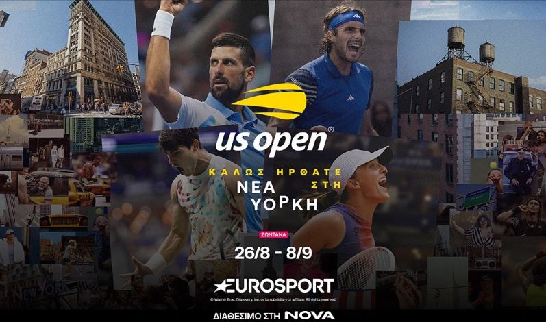 Τα κανάλια Eurosport μεταφέρουν στους φίλους του τένις την απόλυτη εμπειρία του 4ου και τελευταίου Grand Slam της σεζόν, του 144ου US Open. Οι συνδρομητές της Nova θα έχουν την ευκαιρία να απολαύσουν τη διοργάνωση, που διεξάγεται από τη Δευτέρα 26 Αυγούστου έως και την Κυριακή 8 Σεπτεμβρίου, στα ανοιχτά κορτ σκληρής επιφάνειας του USTA Billie Jean King National Tennis Center στην Νέα Υόρκη, με τη συμμετοχή του Στέφανου Τσιτσιπά και της Μαρίας Σάκκαρη.