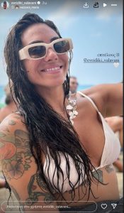 Η Ευρυδίκη Βαλαβάνη, φορώντας λευκό μαγιό και ένα μικρό πέπλο πόζαρε στον φακό με χαμόγελο και ο ενθουσιασμός της για τη μεγάλη μέρα που πλησιάζει δεν κρύβεται.