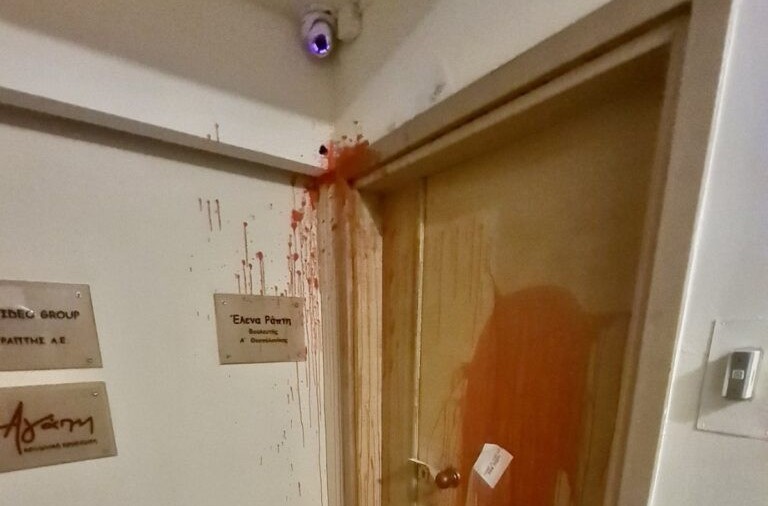 Οι δράστες έγραψαν το σύνθημα «Νίκη στην απεργία πείνας του Θ. Πικάση» και πέταξαν κόκκινες μπογιές στο γραφείο της βουλευτή της ΝΔ Α’ Θεσσαλονίκης που βρίσκεται στην περιοχή της Καμάρας.
