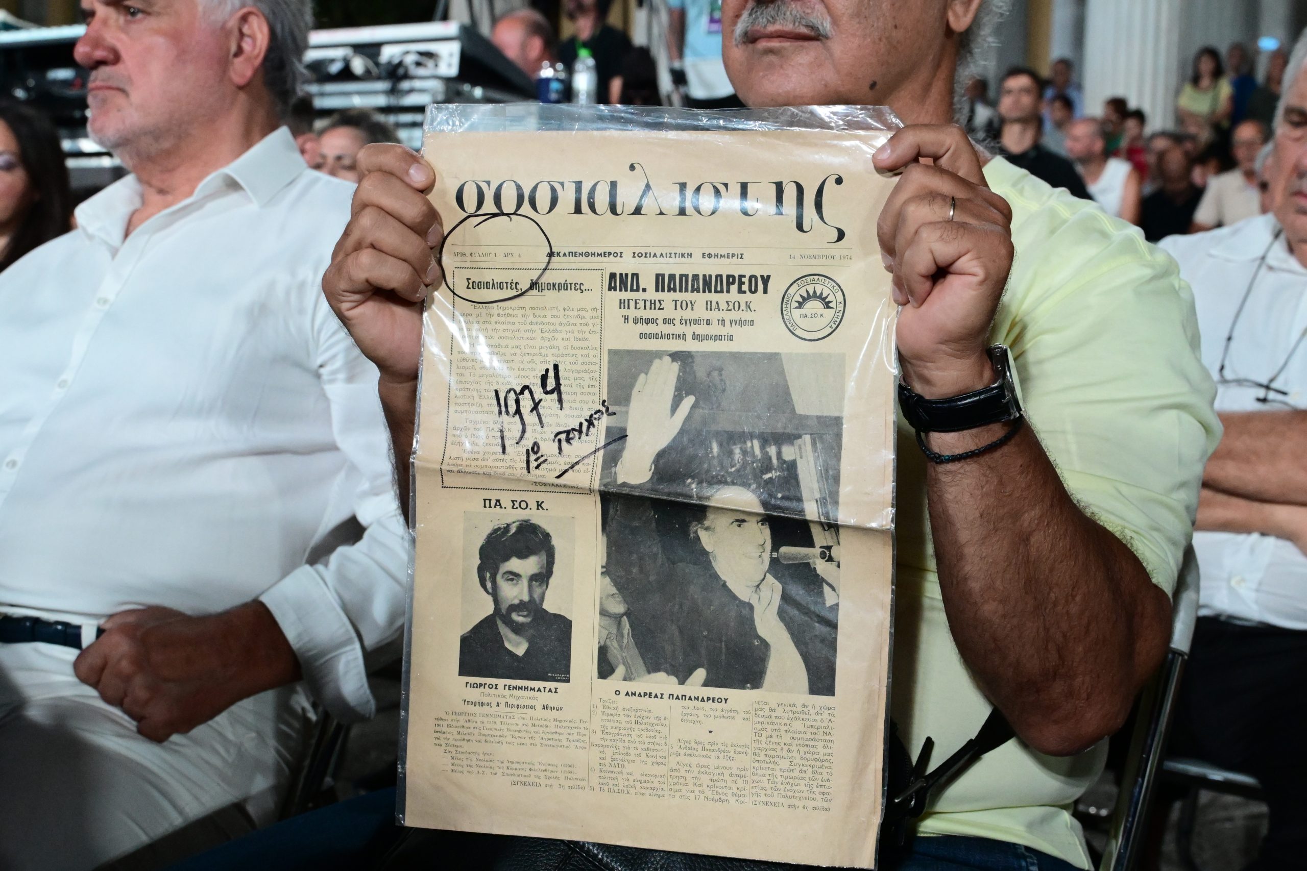 Από τη πλευρά του ο Γιώργος Παπανδρέου τόνισε πως «το ΠΑΣΟΚ έδωσε στο λαό φτερά δημοκρατικά» και ότι «δεν απαιτούσε απλά μια αλλαγή στην εξουσία».