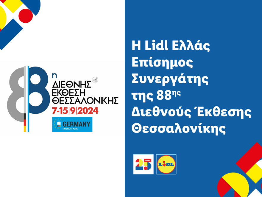 Η Lidl Ελλάς, ηγετική δύναμη στον κλάδο του λιανεμπορίου, με υπερηφάνεια ανακοινώνει τη συμμετοχή της ως Επίσημος Συνεργάτης στην 88η Διεθνή Έκθεση Θεσσαλονίκης (ΔΕΘ), η οποία θα διεξαχθεί από τις 7 έως τις 15 Σεπτεμβρίου 2024. Η φετινή διοργάνωση είναι ιδιαίτερα σημαντική για την εταιρεία, καθώς αποτελεί την πρώτη της συμμετοχή στην Έκθεση και συμπίπτει με την 25η επέτειο από την ίδρυσή της στην Ελλάδα. Η εταιρεία επιδιώκει να γιορτάσει την επέτειο αυτή στην Έκθεση, προσκαλώντας όλους τους Έλληνες καταναλωτές να γνωρίσουν από κοντά όλους τους λόγους που την κάνουν να είναι στα καλύτερα της.