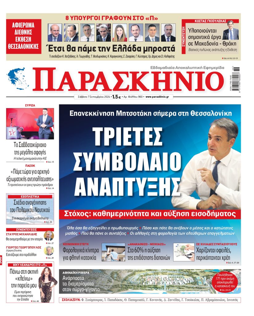 Μη χάσετε το Σάββατο 7 Σεπτεμβρίου το «ΠΑΡΑΣΚΗΝΙΟ», που κυκλοφορεί με ρεπορτάζ, έρευνες και παρεμβάσεις οι οποίες θα συζητηθούν.