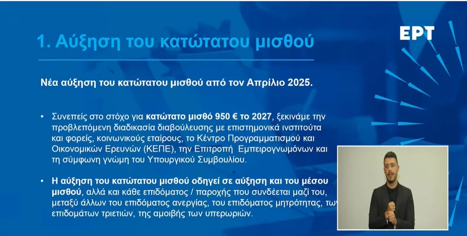 Νέα αύξηση του κατώτατου μισθού από τον Απρίλιο του 2025. Στόχος της κυβέρνησης είναι ο μισθός να αγγίξει τα 950 ευρώ και ο μέσος μισθός τα 1.500 ευρώ το 2027.