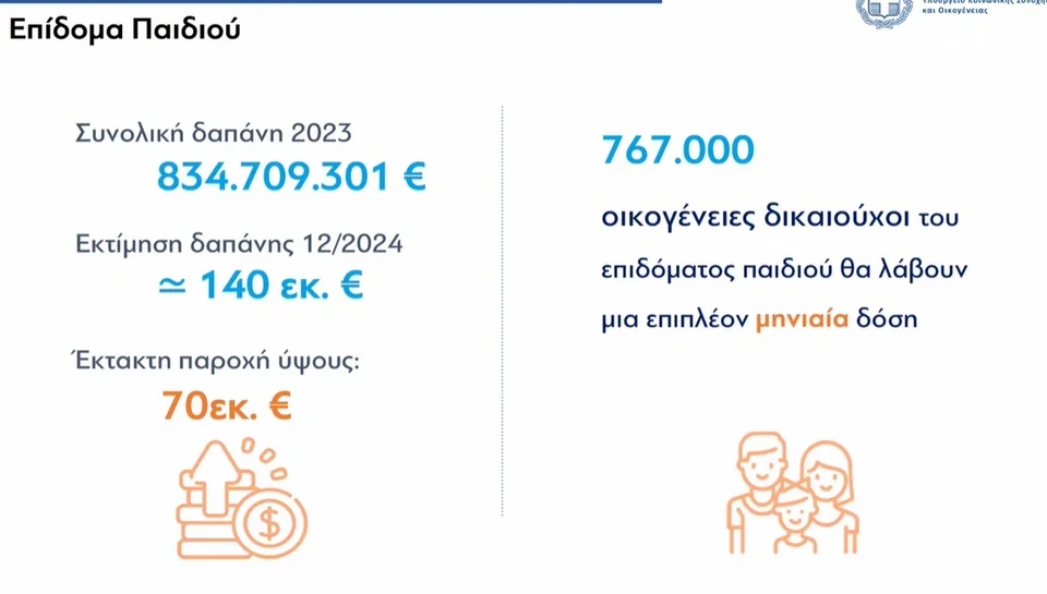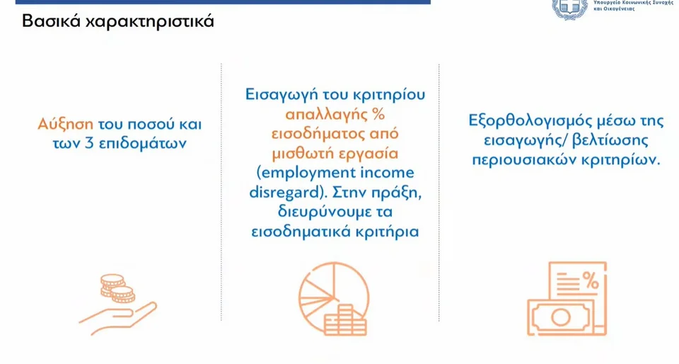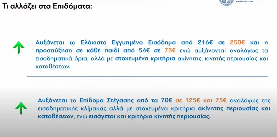 Το ελάχιστο εγγυημένο εισόδημα αυξάνεται στα 250 ευρώ και η προσαύξηση για κάθε παιδί είναι πλέον στα 75 ευρώ.