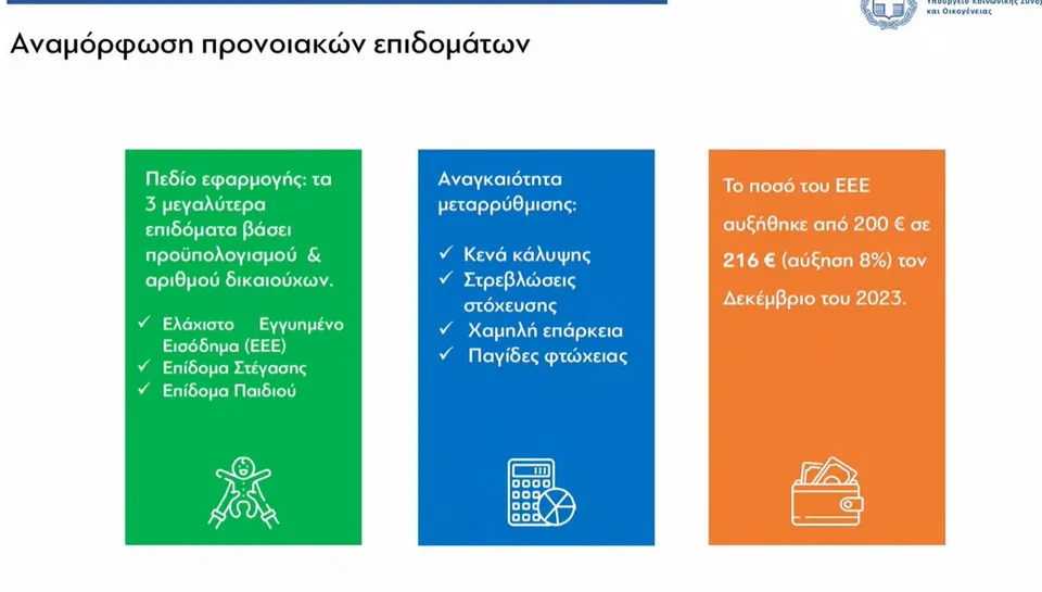 Μείζονα ζητήματα που καλύπτουμε μέσα από τη μεταρρύθμιση είναι η μεγάλη ενίσχυση του ελάχιστου εγγυημένου εισοδήματος, η διεύρυνση τριτέκτων και ενίσχυση πολιτικών για το δημογραφικό.
