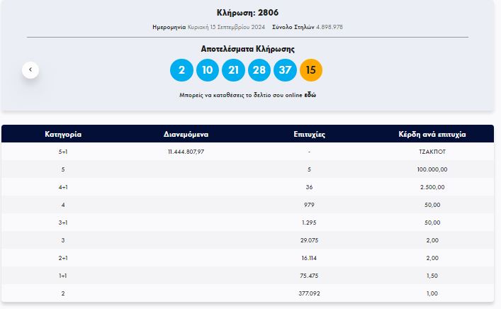 Κοινοποίηση Facebook Twitter LinkedIn Pinterest Email Copy Link Τα αποτελέσματα της κλήρωσης κλήρωση ΟΠΑΠ Τζόκερ