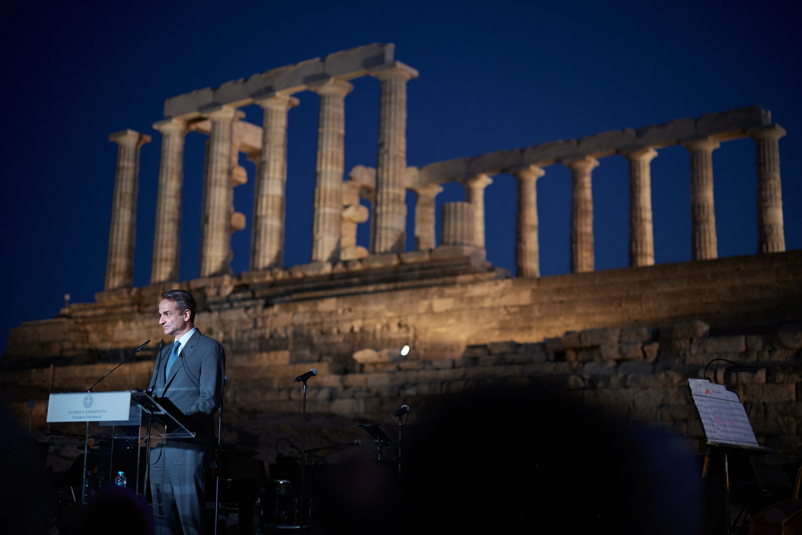 «Πρόκειται για μια παρέμβαση που ήταν επιβεβλημένη, καθώς ο νέος φωτισμός αναβαθμίζει το μνημείο, θωρακίζοντας και την ακεραιότητά του, γιατί αναδεικνύει τη μοναδική γεωμετρία του, τον ίδιο τον περίβολο, το βραχώδες ανάγλυφο περιβάλλον του, ενώ τα παράλληλα έργα στα σημεία εισόδου και εξόδου, θα επιτρέπουν σε όλους την ασφαλέστερη πρόσβαση», δήλωσε ο πρωθυπουργός στην ομιλία του. «Στο εξής λοιπόν θα μπορούμε να θαυμάζουμε το μεγαλείο του χώρου από κάθε γωνιά, είτε τον αντικρίζουμε από τη θάλασσα είτε από τη στεριά, σ ένα έργο το οποίο επιμελήθηκε η Ελευθερία Ντεκώ και η ομάδα της με την ίδια ευαισθησία που είδαμε στην ανάλογη παρέμβαση που έκανε στον Βράχο της Ακρόπολης με την ευγενική χορηγία του Ιδρύματος Ωνάση και με τον ίδιο σεβασμό στο περιβάλλον από τη φωτορύπανση στη διάρκεια της νύχτας. Τολμώ να πω ότι έτσι ο ναός του Ποσειδώνα αποκτά την εμβέλεια που θα είχαν οραματιστεί και οι πρόγονοί μας, ταυτόχρονα ωστόσο και τις συνθήκες για να εντάσσεται πια στη σύγχρονη ζωή με εκδηλώσεις όπως η σημερινή για παράδειγμα… Γιατί το στοίχημα του πολιτισμού δεν είναι μόνο η διατήρηση της κληρονομιάς του παρελθόντος, αλλά και η συμμετοχή της στη διαμόρφωση του παρόντος και του μέλλοντος», τόνισε μεταξύ άλλων ο Κ. Μητσοτάκης.