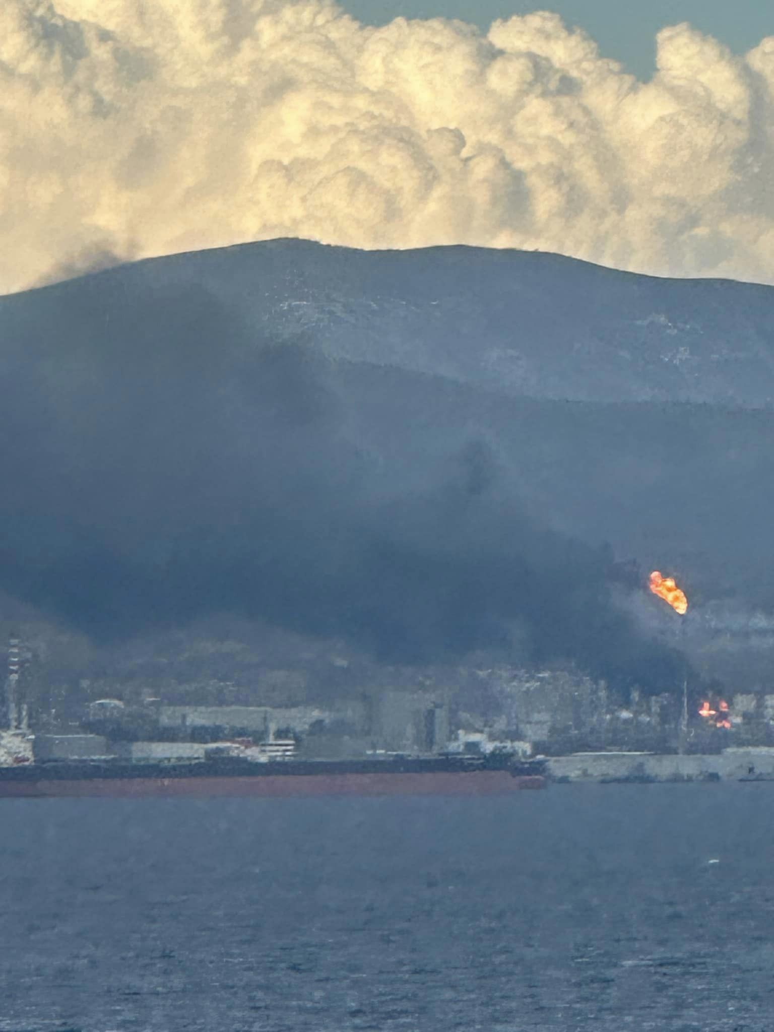 Η περιοχή έχει πνιγεί από πυκνούς μαύρους καπνούς, οι οποίοι είναι ορατοί σε απόσταση πολλών χιλιομέτρων. Μαζί με την Πυροσβεστική στο σημείο επιχειρεί και η ομάδα κατάσβεσης του διυλιστηρίου.