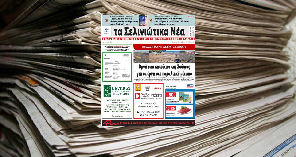 Κοινοποίηση Facebook Twitter LinkedIn Pinterest Email Copy Link Διαβάστε σήμερα στα «Σελινιώτικα Νέα» "Σελινιώτικα Νέα"
