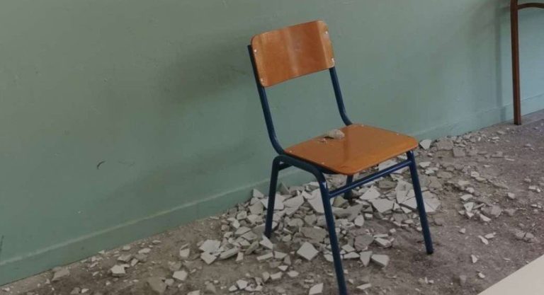 Από το ταβάνι σχολικής αίθουσας του 3ου Γυμνασίου – ΓΕΛ Θεσσαλονίκης κατά τη διάρκεια του μαθήματος, όπως καταγγέλλουν σε ανακοίνωσή τους τα μέλη της Ομοσπονδίας Γονέων και Κηδεμόνων Περιφέρειας Κεντρικής Μακεδονίας. Από την πτώση των σοβάδων δεν υπήρξε τραυματισμός παιδιών καθώς όπως σημειώνουν από τύχη «απουσίαζαν οι μαθητές που κάθονταν στα συγκεκριμένα θρανία».