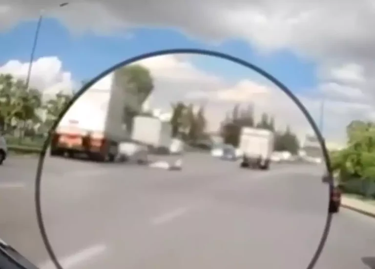 Από την σύγκρουση ο οδηγός της μηχανής όπως διακρίνεται στο βίντεο του ΣΚΑΙ έπεσε στην άσφαλτο σε ένα δρόμο ταχείας κυκλοφορίας με τον κίνδυνο για τη ζωή του να είναι μεγάλος.