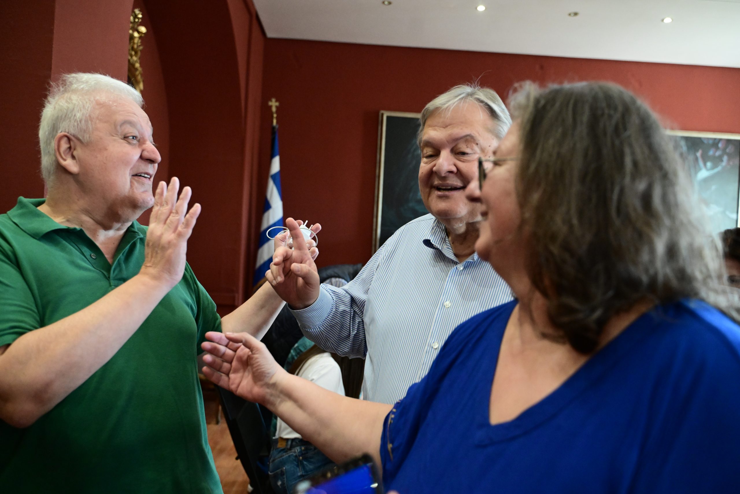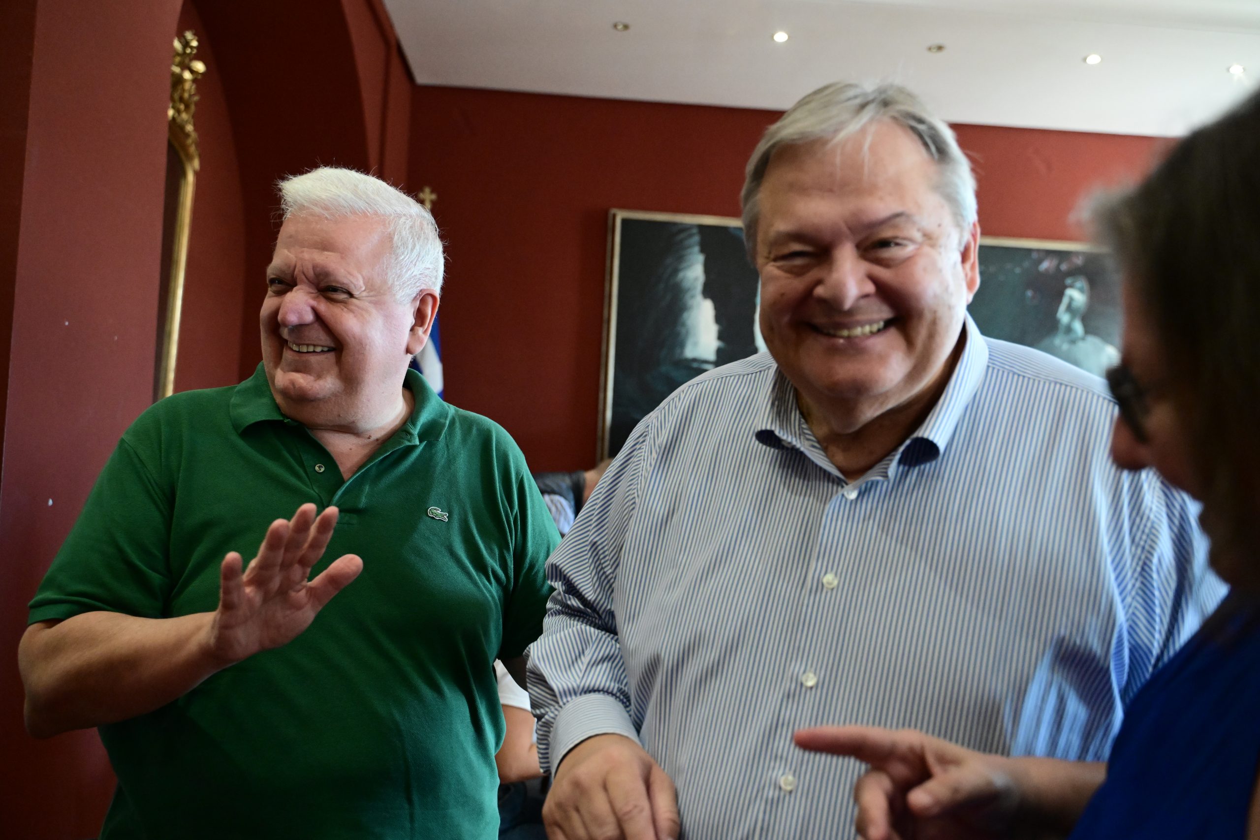 Ο πρώην πρόεδρος του κόμματος και πρώην αντιπρόεδρος της κυβέρνησης, ψήφισε χαμογελαστός στο πνευματικό κέντρο του δήμου Αθηναίων. Εκεί συναντήθηκε με τον οργανωτικό ιθύνοντα νου του Χάρη Δούκα, Χρήστο Πρωτόπαππα. Ο φωτογραφικός φακός του συνέλαβε σε ένα ένθερμο τετ α τετ με χαμόγελα και πειράγματα.