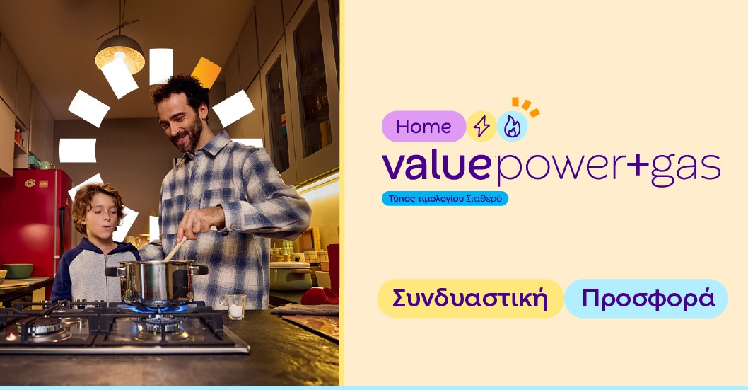 Ο απόλυτος συνδυασμός προγραμμάτων ρεύματος και φυσικού αερίου Protergia Value Power+Gas είναι εδώ! Απολαύστε χαμηλές και σταθερές τιμές για την ηλεκτρική ενέργεια και το φυσικό αέριο για να ξενοιάσετε για έναν ολόκληρο χρόνο!