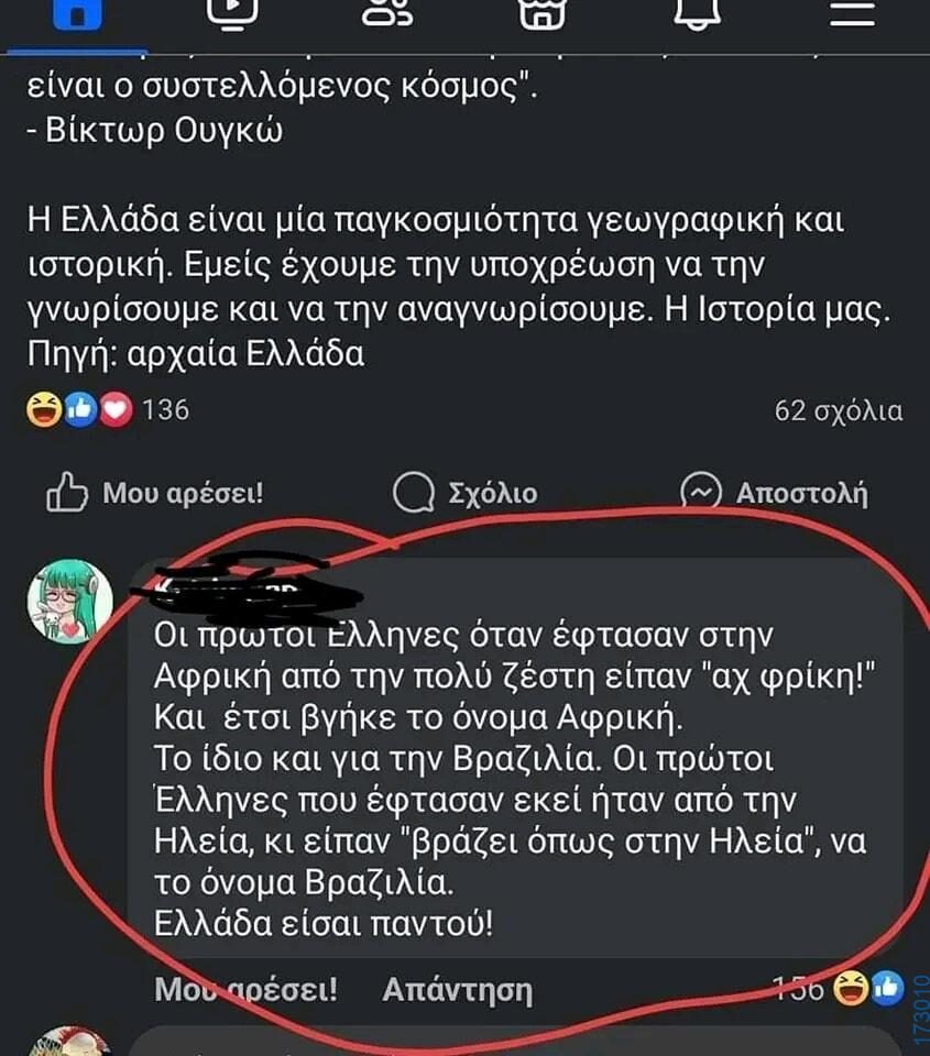 Στην παρακάτω φωτογραφία βλέπουμε το αποκορύφωμα της αγάπης προς την Ελλάδα, αφού ο διαδικτυακός χρήστης αποφάσισε να «δείξει» πως έχει επέμβει ριζικά η χώρα μας, σε σημαντικές ονομασίες χωρών και Ηπείρων. Προφανώς είναι ένα χιουμοριστικό σχόλιο, αλλά έχει σημάδια αλήθειας αφού η ζέστη μας προκαλεί φρίκη και στην Ηλεία, κυριολεκτικά βράζει ο τόπος!