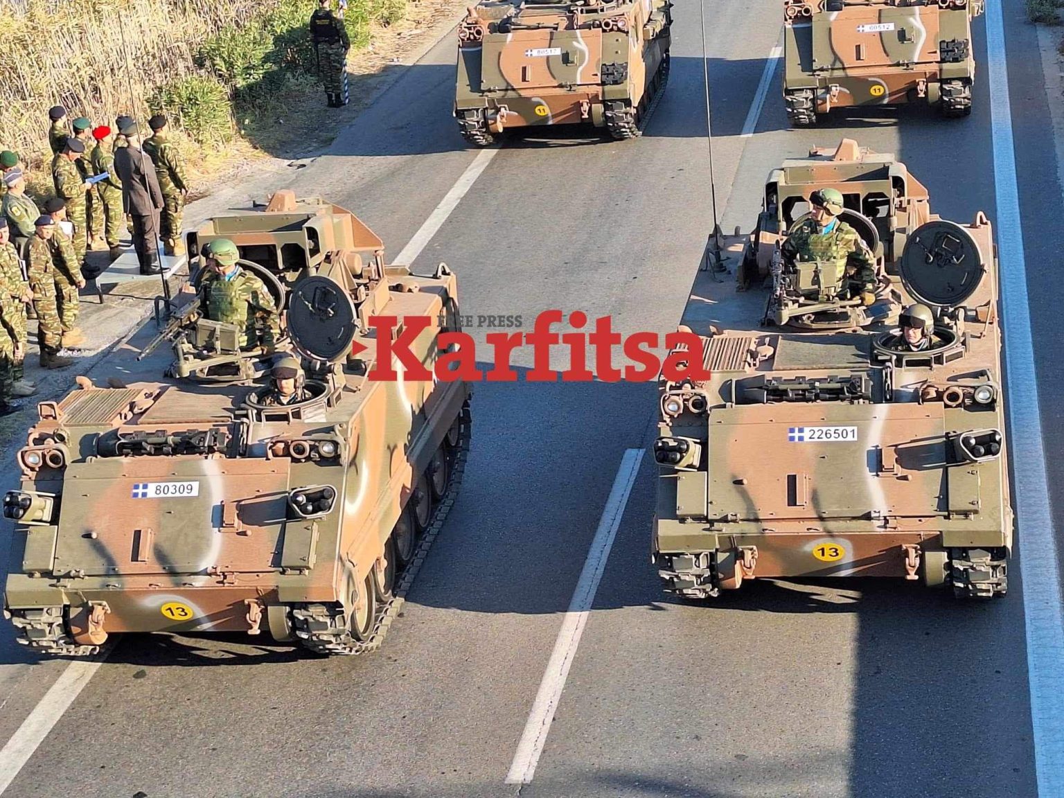 Στα πρώτα μηχανοκίνητα που έδωσαν το εναρκτήριο λάκτισμα της πρόβας «τζενεράλε» περί τις 09.30, βρίσκονται τα εντυπωσιακά τεθωρακισμένα marder και ακολουθούν τα mlrs 270, stinger και torm m1. Αμέσως μετά βρίσκονται τα άρματα μάχης τύπου leoprad 2, hell 2A4 και Leo 1Α5.