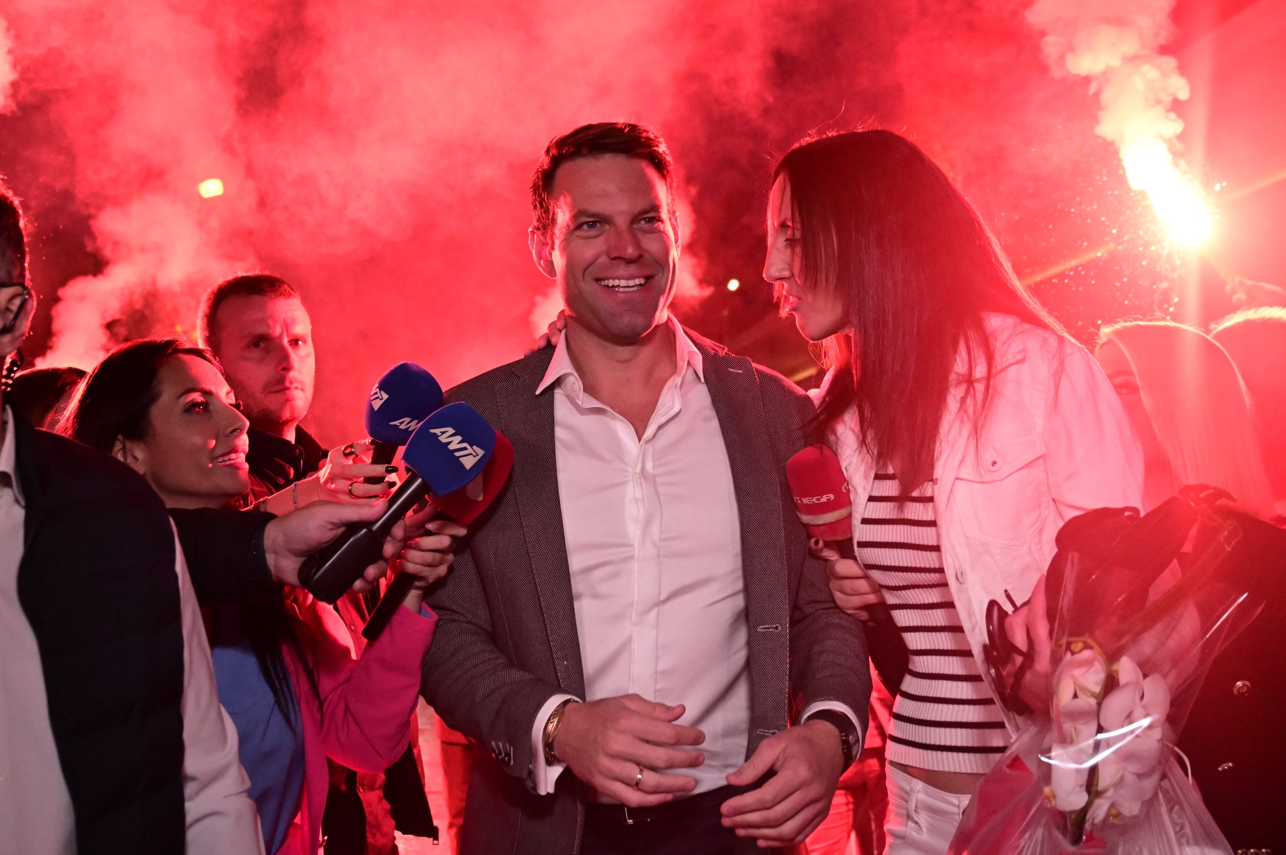 Ο Στέφανος Κασσελάκης έφτασε λίγο μετά τις 19:00 στο χώρο με τους οπαδούς του να τον υποδέχονται με καπνογόνα, επευφημίες αλλά και το σύνθημα «Στέφανε θυμήσου η βάση είναι μαζί σου».