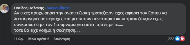 Αν ειχες προχωρησει την αναπτυξιακη τραπεζα,αν ειχες αφησει τον Εοπυυ να λειτουργησει σε περιοχες και μεσω των συνεταιριστικων τραπεζων,αν ειχες συγκρουστει με τον Στουρναρα για αυτα που επρεπε…..