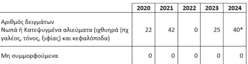 Όπως ενημερώνει, κατά τον ετήσιο επίσημο έλεγχο τροφίμων του 2024 τα δείγματα που ελήφθησαν σε κονσερβοποιημένα αλιεύματα κρίθηκαν όλα συμμορφούμενα.