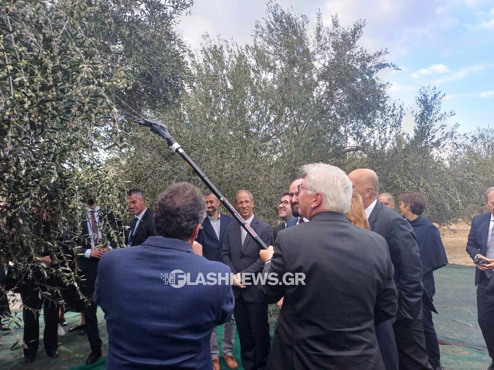 Τα στάδια παραγωγής ελαιολάδου είχε την ευκαιρία να δει από κοντά ο πρόεδρος της Γερμανίας, Φρανκ Βάλτερ Σταϊνμάιερ. Σύμφωνα με το flashnews, κατά την επίσκεψή του στα Χανιά, ο Γερμανός πρόεδρος ξεναγήθηκε σε ελαιώνα και ελαιοποιείο. Μάλιστα, είχε τη δυνατότητα να ραβδίσει ελιές, μαζί με τη σύζυγό του, Έλκε Μπούντενμπεντερ.