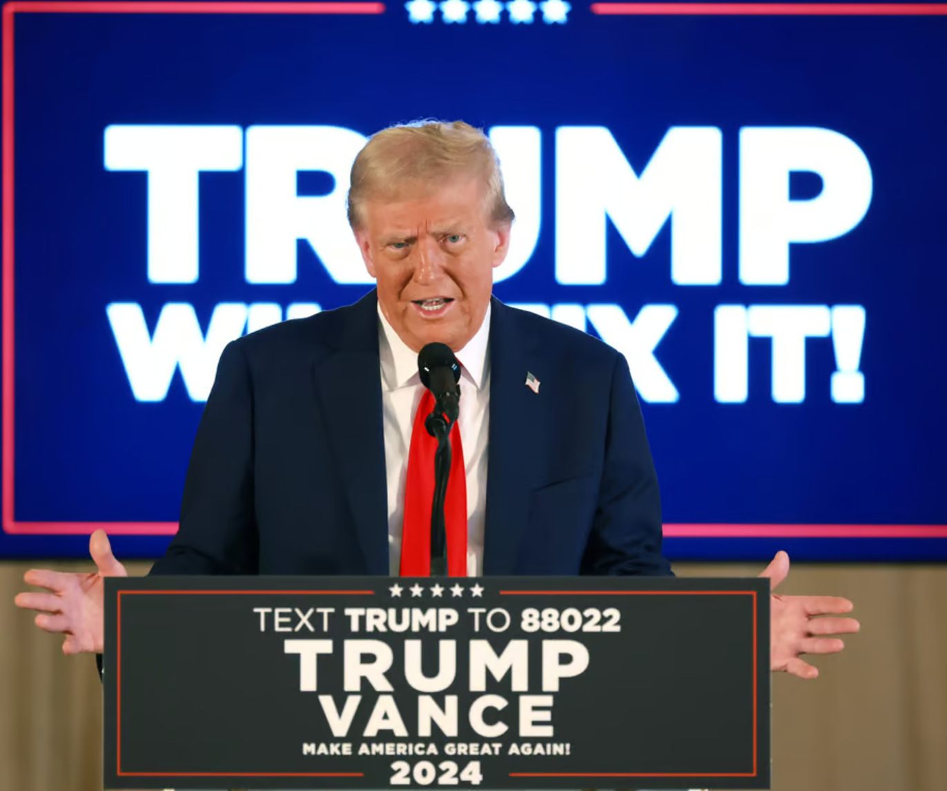Αυτή θα είναι η χρυσή εποχή της Αμερικής, έχουμε κερδίσει τις αμφίρροπες πολιτείες Τζόρτζια, Πενσιλβάνια, κερδίζουμε Νεβάδα, Αριζόταν, Αλάσκα, έχουμε κερδίσει τουλάχιστον 350 εκλέκτορες», είπε αρχικά στην ομιλία