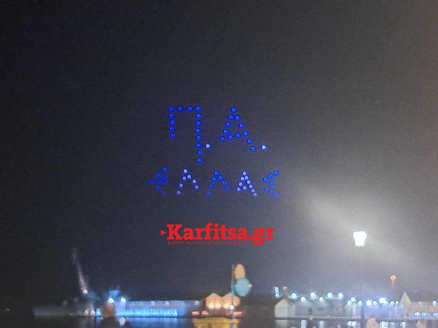 Η Πολεμική Αεροπορία παρουσίασε και με σειρά drone διάφορες «εικόνες» στον ουρανό της πόλης που προερχόταν από το Λιμάνι, με το μήνυμα «Π.Α. ΕΛΛΑΣ» να «στολίζει» τον ουρανό της Θεσσαλονίκης.