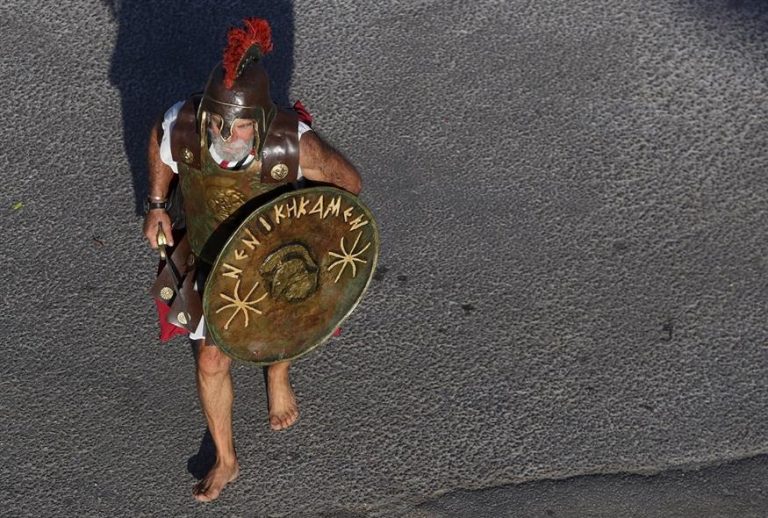 Μάλιστα, ένας άνδρας εμφανίστηκε με στολή αρχαίου Έλληνα πολεμιστή, τραβώντας πάνω του όλα τα βλέμματα.