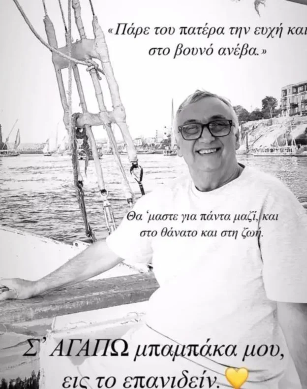 «Πάρε του πατέρα την ευχή και στο βουνό ανέβα. Θα ‘μαστε για πάντα μαζί και στο θάνατο και στη ζωή. Σ’ αγαπάω μπαμπάκα μου, εις το επανιδείν», έγραψε πάνω στην ασπρόμαυρη φωτογραφία του πατέρα της με φόντο τη θάλασσα, η κόρη του γνωστού ψυχιάτρου που πέθανε σε ηλικία 72 ετών.