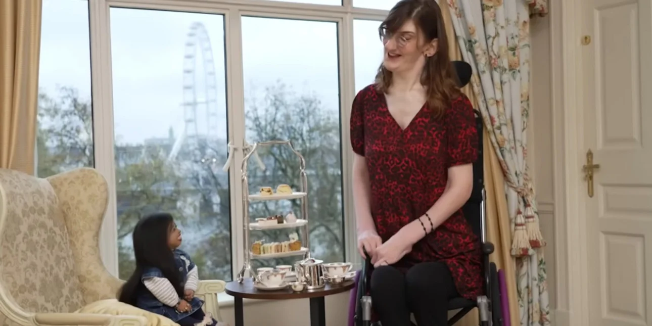 Για τσάι στο Λονδίνο για τον εορτασμό της 20ης ετήσιας Ημέρας Παγκοσμίων Ρεκόρ Γκίνες συναντήθηκαν η πιο ψηλή και η πιο κοντή γυναίκα του κόσμου.