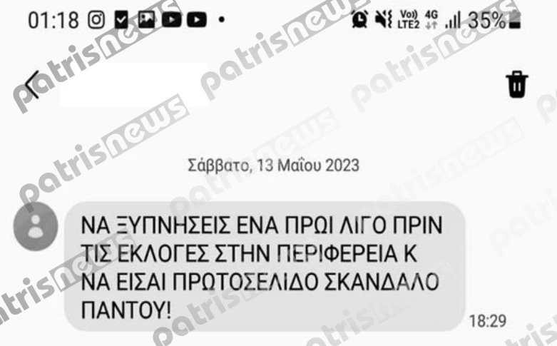 Αξίζει ακόμα να σημειωθεί πως υπήρξαν και μηνύματα πριν τις εκλογές, με τα οποία απειλούσαν τον Αντιπεριφερειάρχη πως θα «ξυπνήσει ένα πρωί λίγο πριν τις εκλογές στην Περιφέρεια και θα είναι πρωτοσέλιδο παντού», γεγονός που θα αποτελούσε «τεράστιο πολιτικό σκάνδαλο».