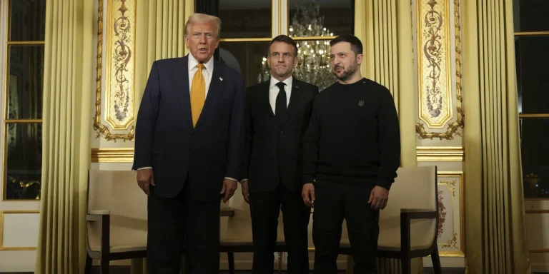 Τριμερής συνάντηση του Γάλλου προέδρου Εμανουέλ Μακρόν, του εκλεγέντος προέδρου των ΗΠΑ Ντόναλντ Τραμπ και του προέδρου της Ουκρανίας Βολοντιμίρ Ζελένσκι πραγματοποιήθηκε στο Παρίσι, στο Ελιζέ, λίγο πριν την έναρξη των εορταστικών εκδηλώσεων για την αναστήλωση της Παναγίας των Παρισίων.
