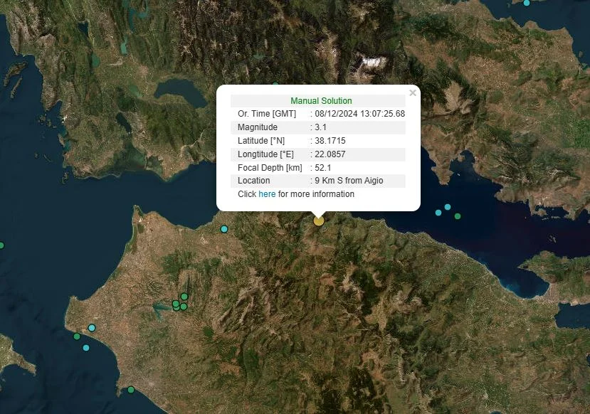 Σεισμός μεγέθους 3,1 της κλίμακας Ρίχτερ, σημειώθηκε το μεσημέρι της Κυριακής (8/12) στο Αίγιο.