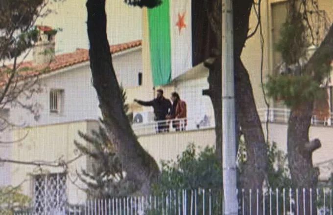 Το πρωί της Κυριακής Σύροι μπήκαν μέσα στην πρεσβεία της Συρίας στο Ψυχικό και κρέμασαν τη σημαία της επανάστασης στο μπαλκόνι του κτιρίου.