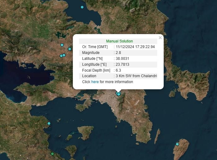 Σεισμός σημειώθηκε στην Αττική το απόγευμα της Τετάρτης (11/12), ο οποίος έγινε αισθητός σε πολλές περιοχές, ακόμα και στο κέντρο της Αθήνας.