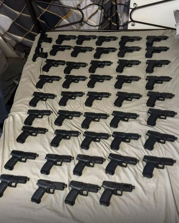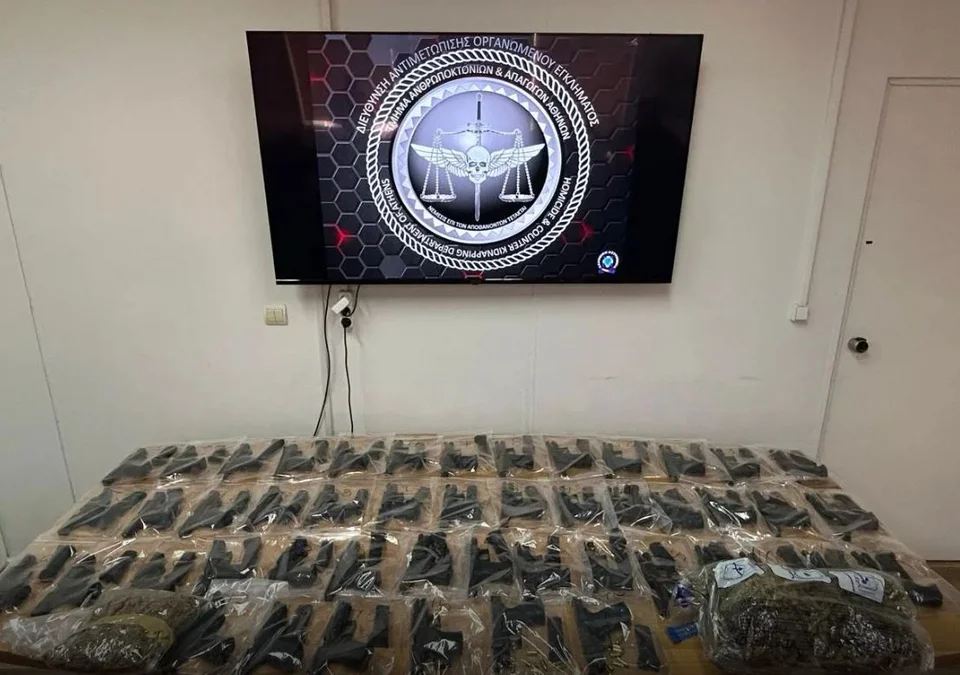 1,7 κιλά ινδικής κάνναβης • Δύο (2) πιστόλια πλήρως λειτουργικά • Τριάντα οκτώ (38) φυσίγγια των 9mm
