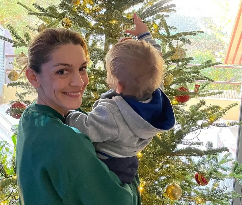 Η δημοφιλής ηθοποιός, Γιουλίκα Σκαφιδά σε ανάρτηση που έκανε στον προσωπικό της λογαριασμό στο Instagram, ποζάρει μπροστά από το χριστουγεννιάτικο δέντρο που κοσμεί το σαλόνι της, κρατώντας στην αγκαλιά της τον γιο της, Άγγελο.