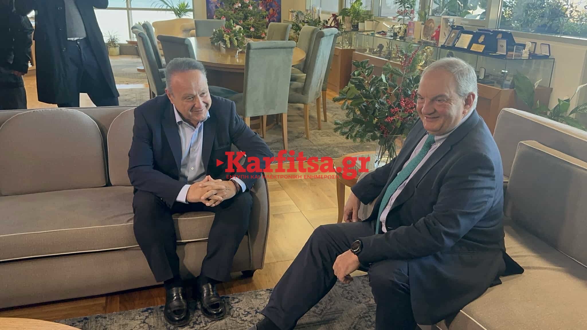 Λίγο μετά τις 10 το πρωί ο πρώην πρωθυπουργός Κώστας Καραμανλής πέρασε το κατώφλι του Δημαρχείου Θεσσαλονίκης. Εκεί στην είσοδο του γραφείου του τον περίμενε ο Δήμαρχος Στέλιος Αγγελούδης.