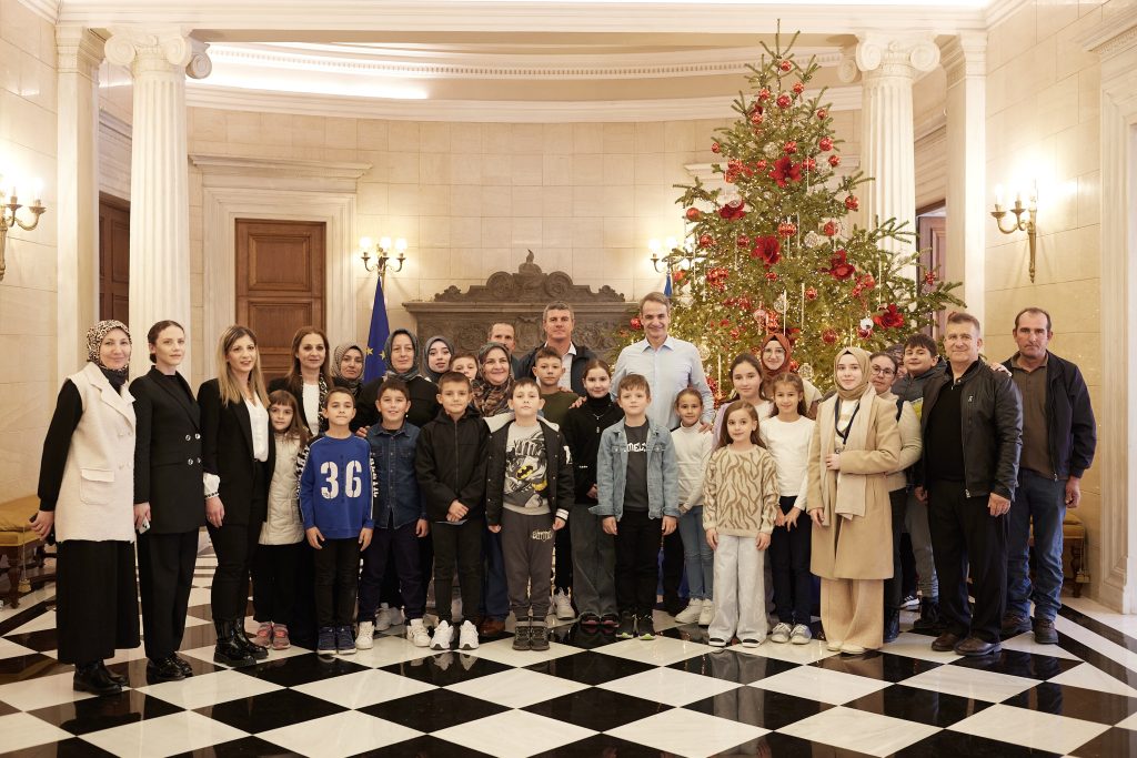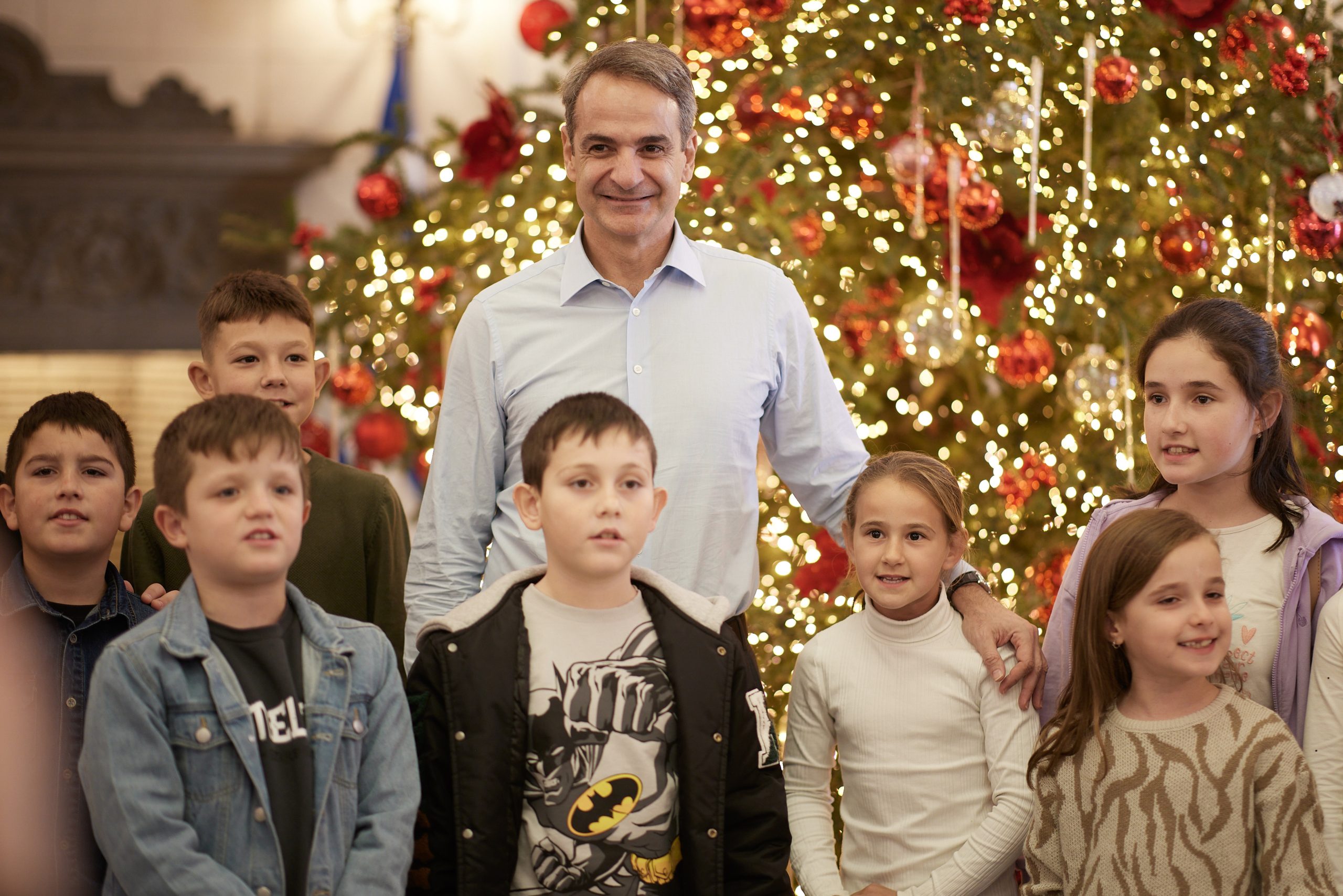 Ο πρωθυπουργός αντάλλαξε ευχές και δώρα για τις γιορτές με τα παιδιά, συζήτησε με τους νεαρούς μαθητές, τους εκπαιδευτικούς και τους γονείς που τα συνόδευαν για τη ζωή στο σχολείο και το χωριό τους, ενώ είχε και την ευκαιρία να ακούσει τις εντυπώσεις τους από την επίσκεψή τους στην Αθήνα. Τα παιδιά προσκάλεσαν τον Κυριάκο Μητσοτάκη να επισκεφθεί το σχολείο τους.
