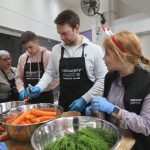Οι δυο τους φόρεσαν ποδιές και βοήθησαν με χαμόγελο και θετική διάθεση, για τα γεύματα που θα μοιραστούν στους ανθρώπους που χρειάζονται βοήθεια.