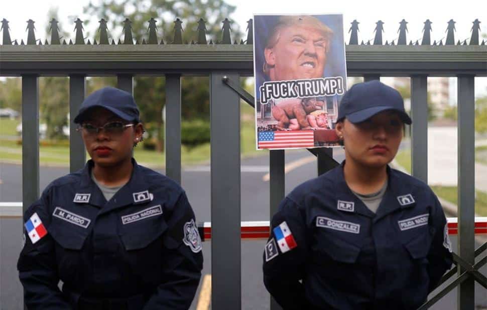 Σε πλακάτ που κράταγαν διαδηλωτές διάβαζε κανείς συνθήματα όπως «Ντόναλντ Τραμπ, δημόσιος κίνδυνος για τον Παναμά».