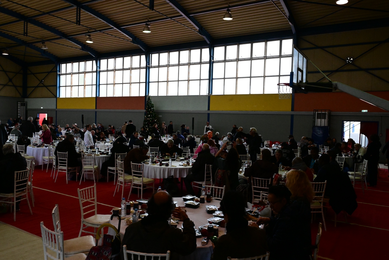 Το Κέντρο Υποδοχής και Αλληλεγγύης του Δήμου Αθηναίων (Κ.Υ.Α.Δ.Α.) οργάνωσε σήμερα, χριστουγεννιάτικο γεύμα αλληλεγγύης για άστεγους και ευάλωτους συμπολίτες μας, στο κλειστό γυμναστήριο του Ρουφ, παρουσία του δημάρχου Αθηναίων, Χάρη Δούκα.