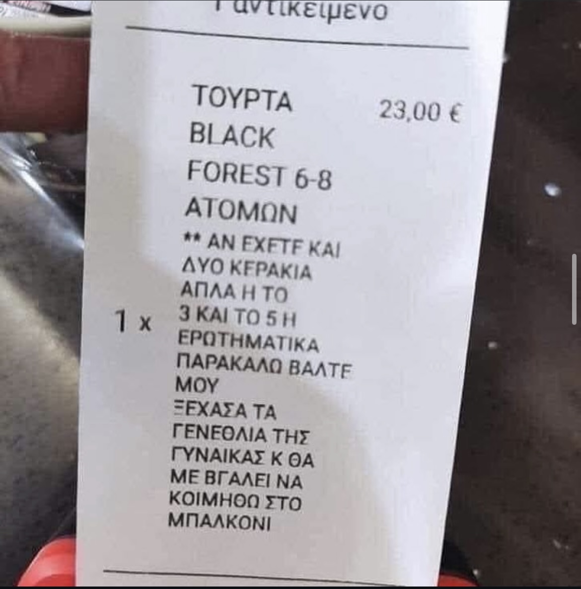 Στην παρακάτω φωτογραφία απόδειξης, ένα μαγαζί έδειξε πως θα σταθεί ασπίδα σωτηρίας στον άνδρα που ξέχασε τα γενέθλια της γυναίκας του, ενώ κινδυνεύει να κοιμηθεί στο… μπαλκόνι! Βέβαια, φίλε μας καταλαβαίνουμε και εσένα που η μνήμη μπορεί να μην είναι το δυνατό σου σημείο, αλλά πρέπει να καταλάβεις και εκείνη που τα γενέθλιά της έρχονται μόνο μια φορά το χρόνο! Στην τελική βάλ’το υπενθύμιση στο κινητό σου!