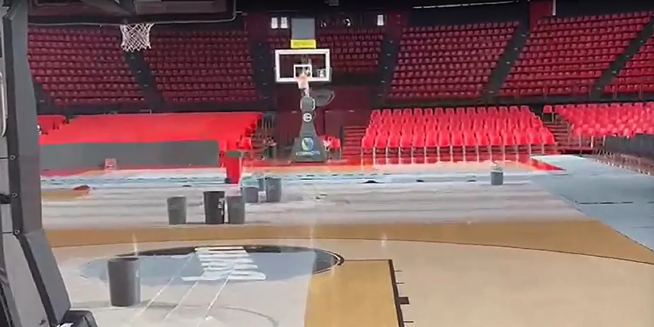 Σημειώνεται, ότι η οροφή του ΣΕΦ στάζει σε αρκετά σημεία, ενώ άνθρωποι των «ερυθρόλευκων» επιχειρούν προκειμένου να βελτιώσουν την κατάσταση και στην συνέχεια όταν απομακρυνθούν τα σωρευμένα ύδατα, να γίνει μία πρώτη εκτίμηση των ζημιών.