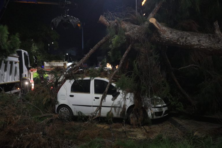 Ένα μεγάλο πεύκο έπεσε το βράδυ της Πέμπτης, δεύτερη ημέρα των Χριστουγέννων, στη Νέα Σμύρνη, καταπλακώνοντας σταθμευμένα αυτοκίνητα.