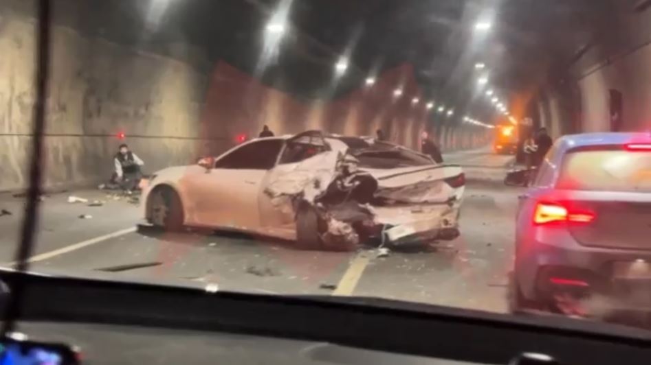 Ο νεαρός βρισκόταν πίσω από το σταματημένο όχημά του, όταν ένα άλλο αυτοκίνητο πέφτει πάνω του, με ιλιγγιώδη ταχύτητα, τον παρασύρει πολλά μέτρα και καταλήγει επάνω στον τοίχο της σήραγγας.