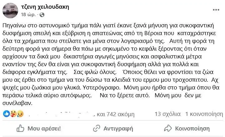 Η ίδια μάλιστα έλαβε μηνύματα και από άλλους συμπολίτες που και εκείνοι όπως της είπαν δεν έλαβαν ποτέ τα χρήματα που ο κόσμος είχε δωρίσει για την οικονομική τους ενίσχυση.